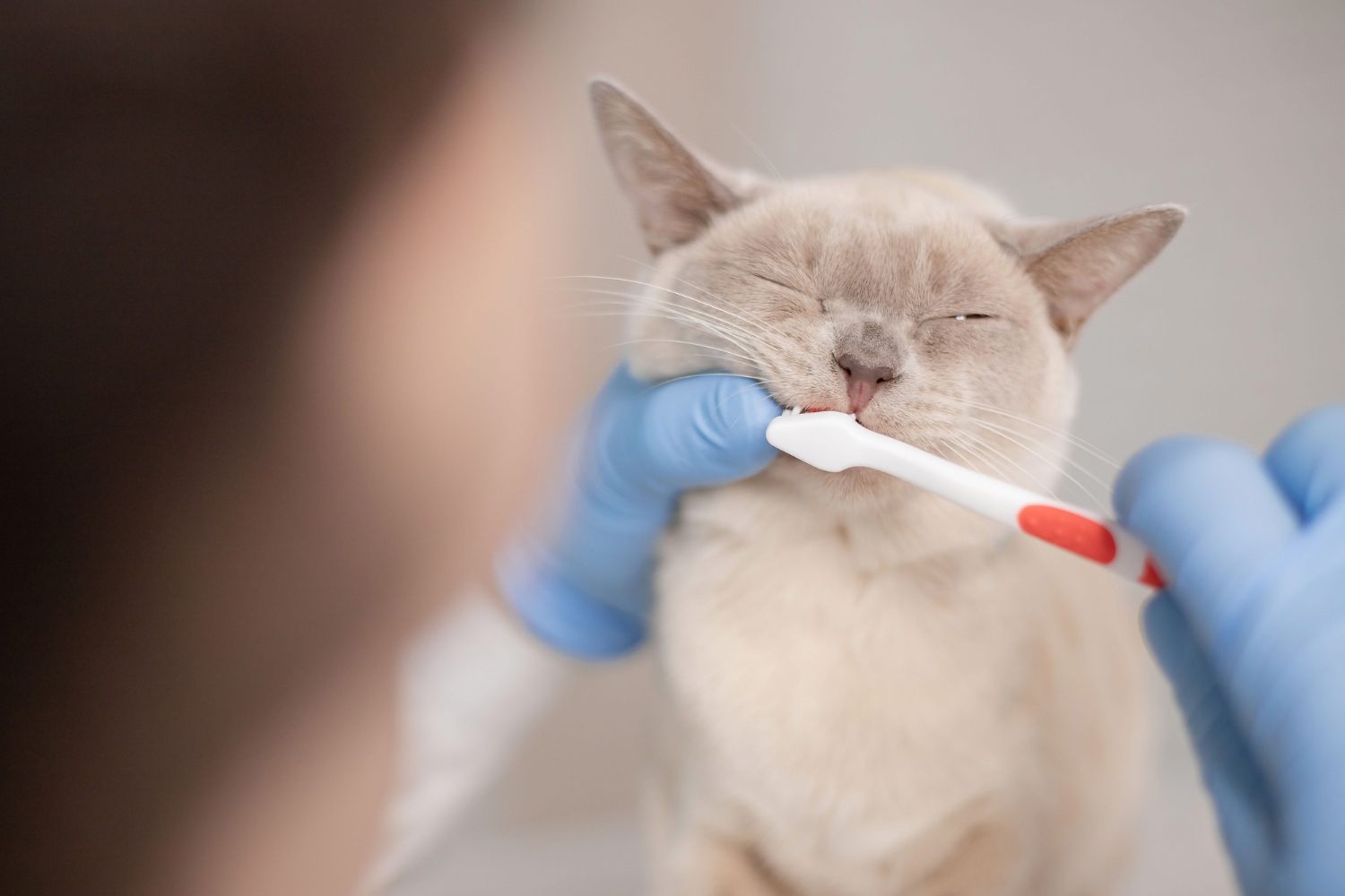 Regular inspection of your pet’s mouth is important to catch dental disease in the early stages. Tartar may appear as a brownish-gold buildup on the teeth, close to the gum-line. Redness or bleeding along the gum line may indicate gingivitis.